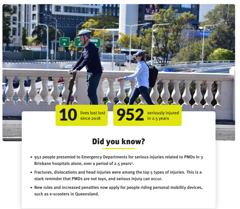 - Primary school aged children, under 12 years, shouldn’t be riding e-scooters or e-skateboards. They can ride low powered electric scooters, which have a maximum speed of 10 km/h or less and are powered by a small electric motor capable of producing 200W or less. These are considered wheeled recreational devices and have a separate set of rules to PMDs. More information is available on the Department of Transport and Main Roads website.